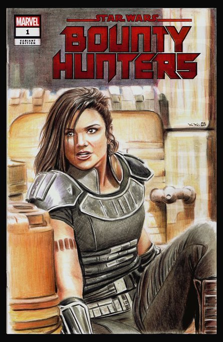 Commissioned #sketchcover of @ginacarano as #CaraDune, from tv series #TheMandalorian . Coloured pencils on a #StarWars : Bounty Hunters blank variant. #coverart #drawing #blankvariant #comicfans #coloredpencil #mandalorian