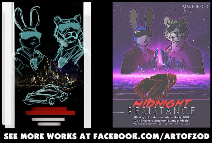 Midnight Resistance cover, from thumbnail to final piece #synthwave #SoundCloud #Zootopia #retro #80s #illustration