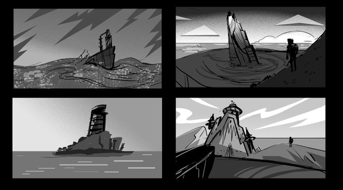 found some more sketches for this. I guess at some point there was a third character in the maze, or something 🥴 not gonna lie I just wanted to draw weird building at the time