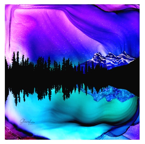 Artist Shauna Liora learned a technique of working with fire and ink from a First Nations artist north of the Arctic Circle. She builds on a dreamy background reminiscent of the Aurora Borealis to create scenes of nature and mountain life. https://t.co/nWNBYLoF1Z