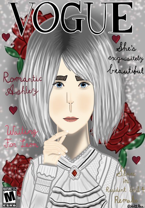 I had the idea of drawing Ashley & putting her in a Vogue magazine. Since her Romantic costume has been revealed by Capcom, I thought it would be more suitable for the drawing!🌹🤍✨