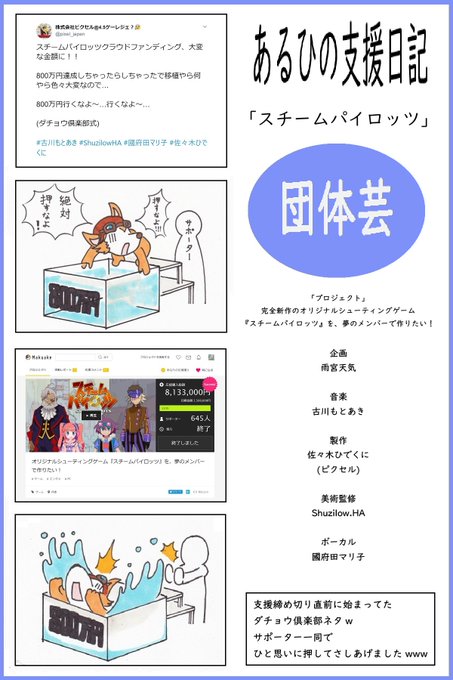 https://t.co/uB1dTNawZh #スチパロ #古川もとあき #佐々木ひでくに #ShuzilowHA #國府田マリ子 スチームパイロッツ支援。 支援額¥19000だったから もう¥1000+でちょうど¥20000にしとこう! CFもラストスパート! おもしろいモノ創りに 是非カタチある応援を!!!!!!