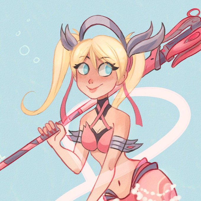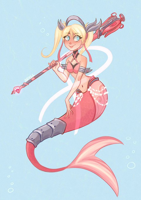 Tenía ganas de participar en el Mermay y me encanta la nueva skin de Mercy así que he hecho una ilustración 2x1😊💞