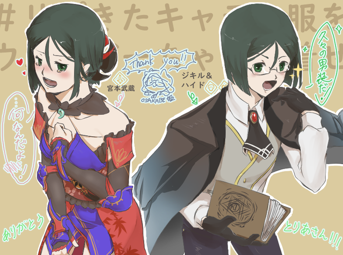着せました~!「ジキル&ハイド」と「宮本武蔵」です!どっちの衣装もデザインとってもすき…!(深夜テンション交じりなので変なのは許してください…!)