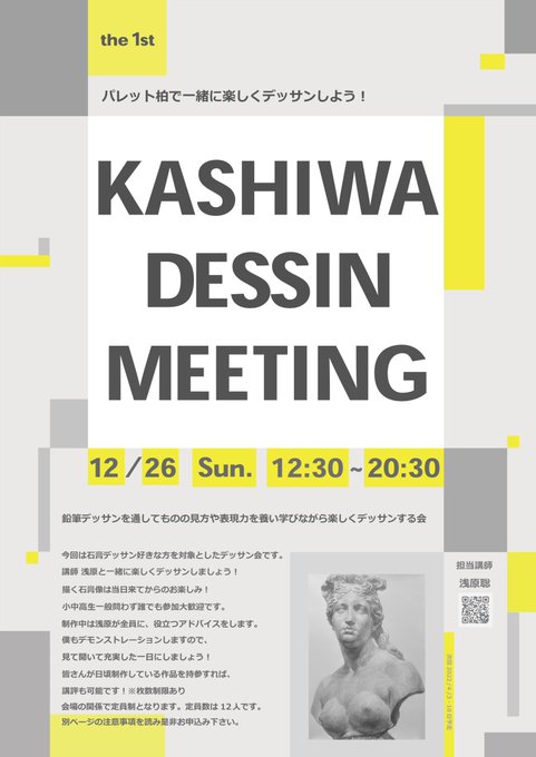 空き残り2名となりました。 ご興味ある方は''お早めに''。 僕は当日デッサン1枚の他にクロッキーも1枚~複数枚描きますが、当日描いたものは全て参加者に抽選で、それぞれプレゼントしますね。 申し込みお待ちしております。