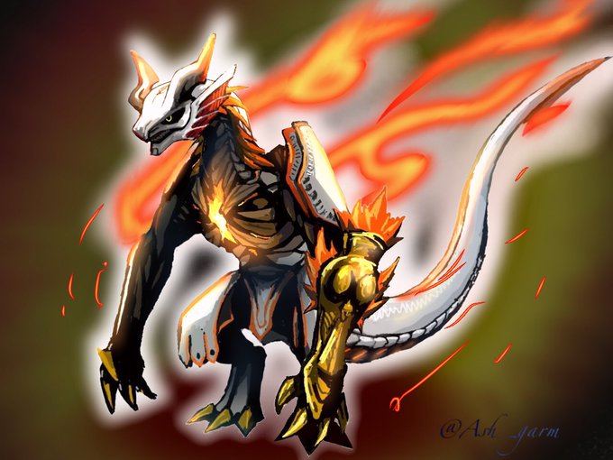 デジタル初期の絵をリメイクしてみたドラゴン。 →の絵は11年前くらいにペイントで描いたもの。当時は絵を保存する方法がわからなくて印刷したものだけ残ってる……