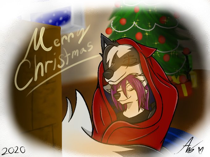 Cuddling with my Wolfie @razorthewind ~ Merry Christmas <3 (Artwork by me)