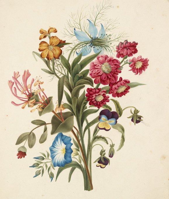 This watercolour painting, 'A Bunch of Country Flowers' is by Sophia Davenport (1818–1916). Sophia was born in Oxford, but travelled far and wide with her paints, recording landscapes and flowers on the way