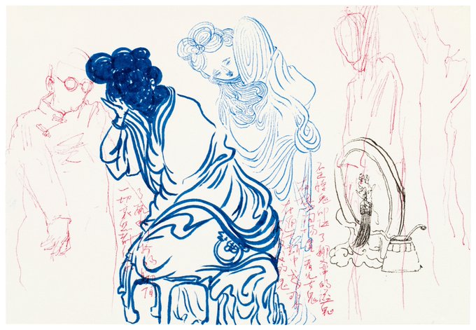 Wang Tuo, “Northeast Notes—Hunger; Northeast Notes—Samsara,” 2021, ink on paper (set of two), 19 x 28cm (each), unique. Generously donated by the artist and White Space Beijing. (6/6)