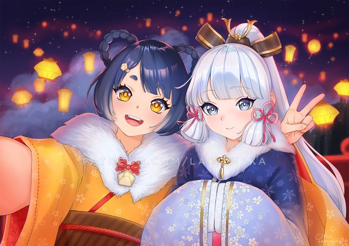 Since Ayaka is FINALLY out here's a throwck to my Xiangling and Ayaka drawing from last year! Did you get lucky yet? 😀