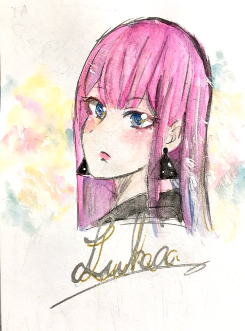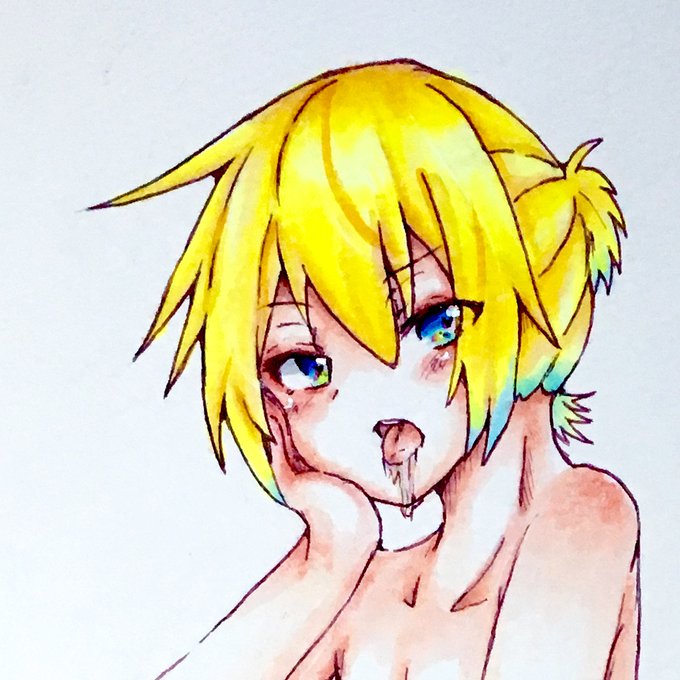 水彩色鉛筆で遊んだ奴 あすきさんっぽくない絵柄ってなんだと考えて描いたルカさんと取り敢えず試験的に塗ってみた落書きレン