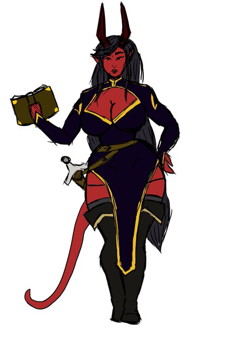 @cherrikissu Thank you for the chance for cute art, and congrats! This is my Tiefling, Jasper. I don't have too many refs of her, but she's basically a fantasy librarian!