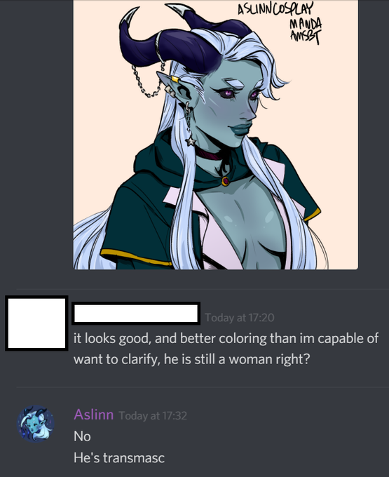 (This is why I barely post in some of the discord I get added to, and when I said no (he isn't a woman) no reply...)