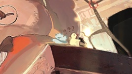 パインコーンのコーデの右側で???を浮かべているひよこです