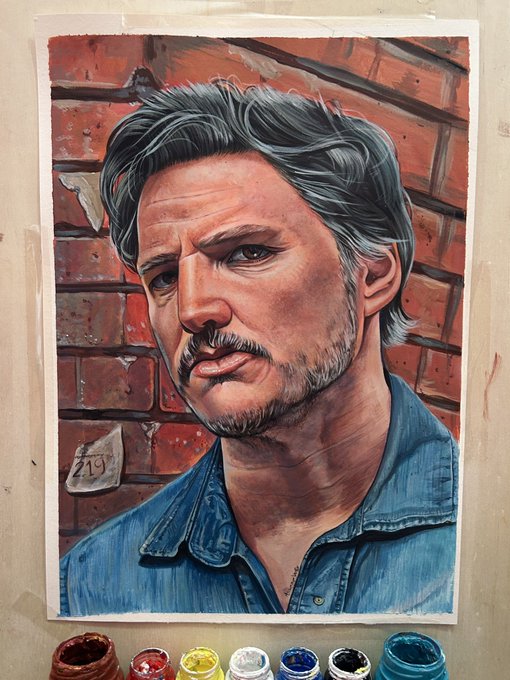 Dibujo de Pedro Pascal ❤️ Formato A3 con pintura acrílica