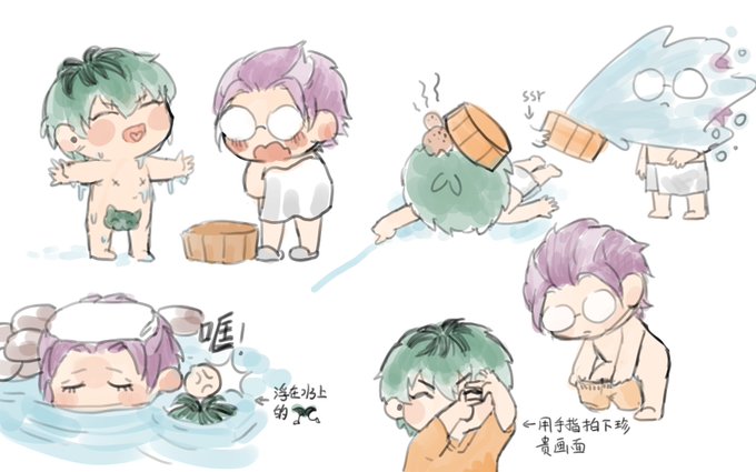 #簓盧 #ささろ ssr:我没带毛巾卢笙给我擦! rso:哈?你是故意的吧。 画点小朋友洗澡