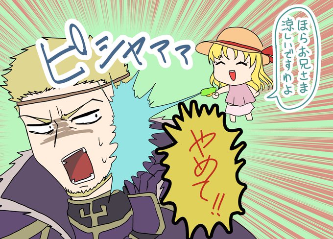 ベルン暑中見舞いです! 今年の夏はギネヴィアに水着を着てもらいました! 頑張って描いたから文字無も見て😊 あと安定のいじられてるお兄様おまけw