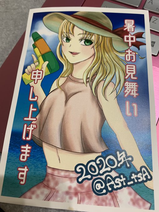 あと暑中見舞いのネップリやってみました✨ ハガキサイズです〜! もし機会があればもらってやってくださいね😊