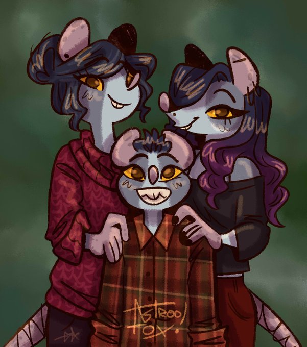 Animal crossing sonas the insta people thought would fit me (lazy alligator, natural smug cat, hip uchi bear, and cool normal mouse) + me updating cat boy and making my friend bees a cat