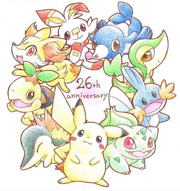 ちゃんとスキャンしたのでPokemonDayのイラスト再掲! 各世代最初に選んだ御三家達