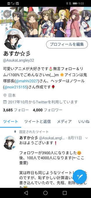 おはようございます❗ すぐにリムられると思うけど、フォロワー4000人になりました\(^-^)/ 何にも面白くないボクですが、これからも仲良くしてください🙏 大好きな麻衣さんにつねられたい😅