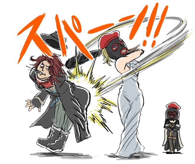 FE ハロウィンまんが 仮装している チキ、ノノ、ファ。 お菓子を持ってる ナーシェン。 クッキーを食べようとしてるナーシェンのドラゴン。 を描いた…つもりです。