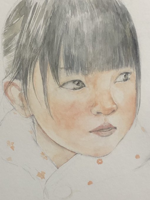 今よりまだ赤ちゃんの頃の娘なので、もう少し幼い感じ出せたらな~。あと首と肩と……いろいろ修正しつつ進めます。