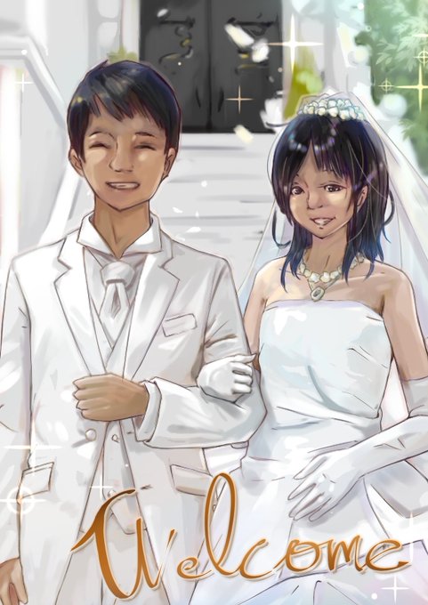 身内が結婚式を挙げたので ウェルカムボードとやらを描きました。 はい
