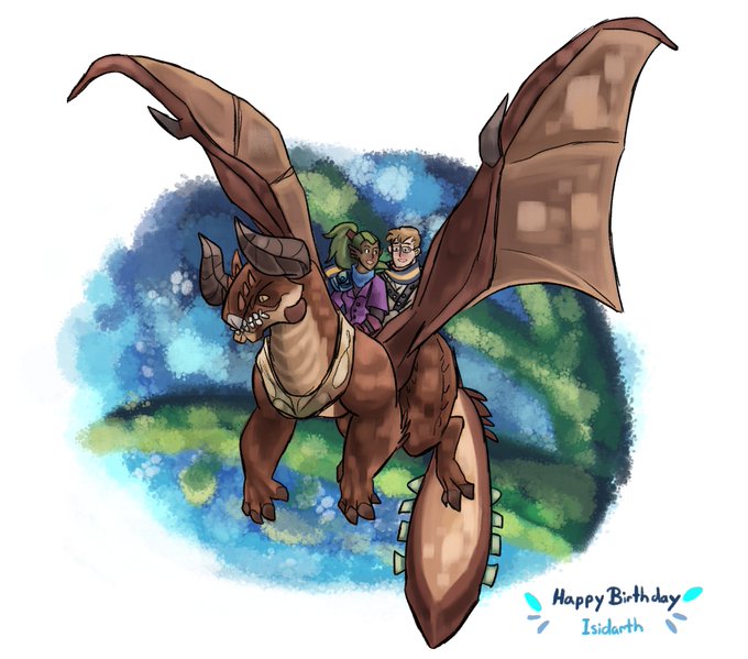 Its @Isidarth's birthday so I drew her Guild Wars 2 characters; Isa and Dirk riding a skyscale.