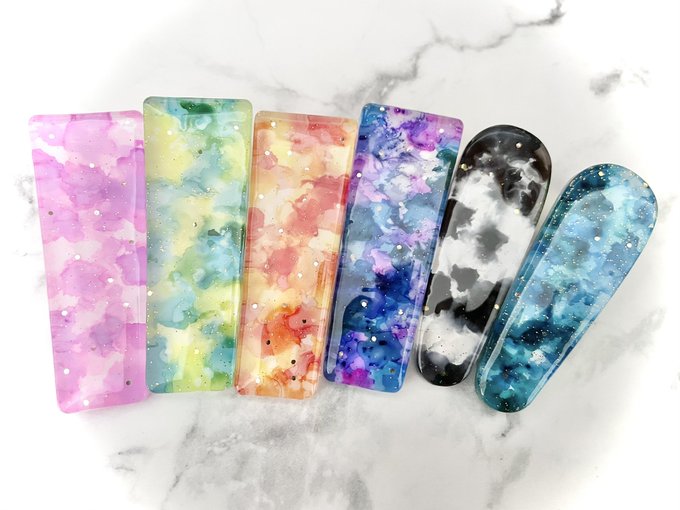マーブルヘアクリップ、モニターさんの反応が良さげなので、Minneのギャラリーの整理が終わり次第アップします((✧σωσ) インクの色も増やしたので、カラーバリエーション無限大でお届けいたしますヾ(*´∀`*)ノキャッキャ