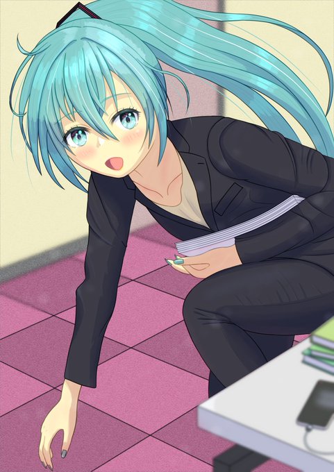 「書類、落ちましたよ?」 落とした書類を拾ってくれるOLミクさん #初音ミク #miku #illustration