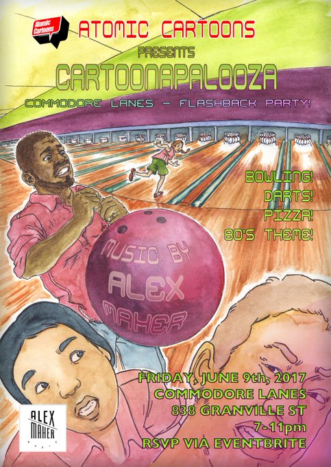 Bowling! Cartoons! Music by @alexmahermusic @CommodoreLanes Don't miss it! Come party with us!