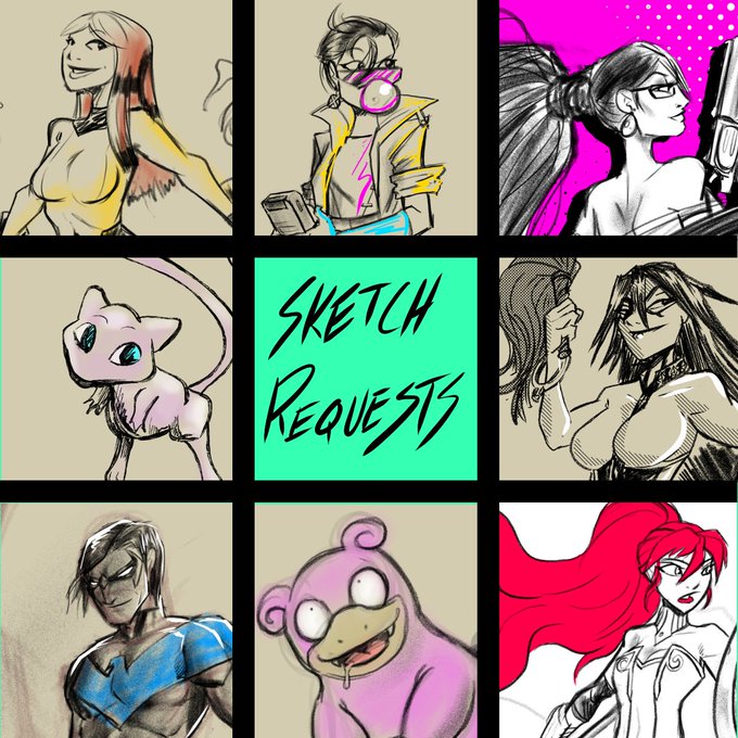 Results of the first sketch request stream! This was fun, I'll probably do it again. #twitch #drawing #artlife #sketchbook