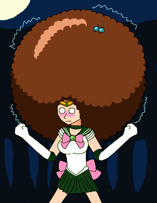 Here's Sailor Jupiter after accidentky giving herself an afro while training her electric attacks at night