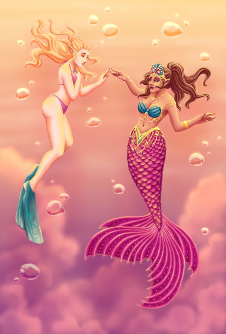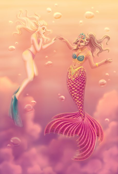 In modern!AU, Louisa works at a mermaid bar, so it only seemed appropriate to draw her as a REAL mermaid for #mermay. This is the most ambitious painting I've ever done, and I'm really happy how it turned out 🥺 Here's both "soft dream" and "crisp bubble" versions~ #comfortocs