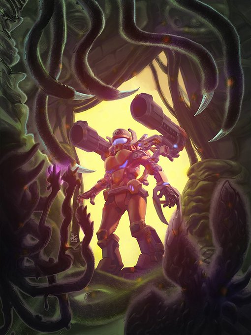 … Self promo #artwork from this week’s #twitchstreaming #digitalpainting #gameart #indiedev #illustration #scifiart #comicart #artistsontwitter #supportsmallstreamers #twitchcreative … "Intruder"