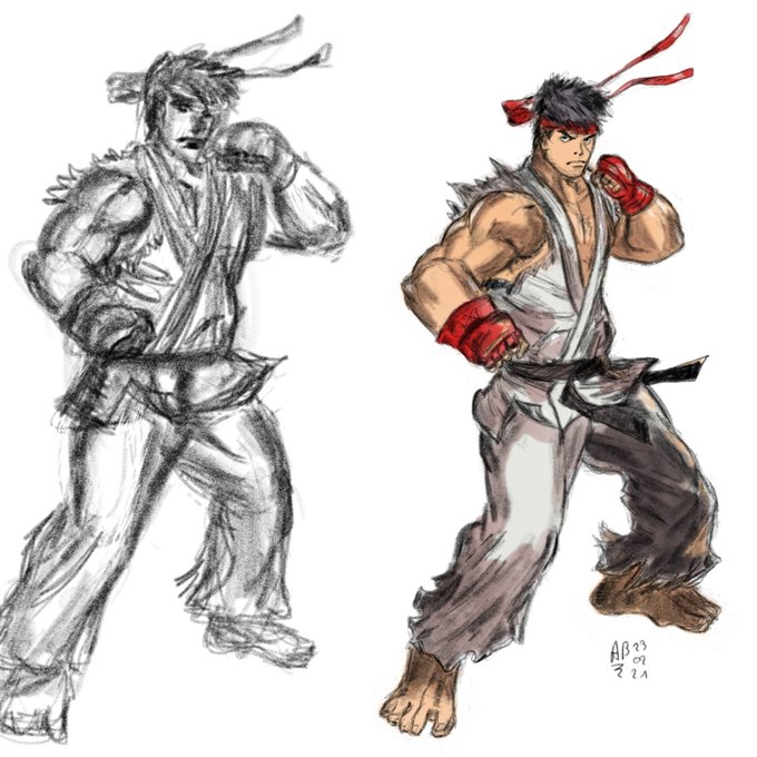 Un petit avant/après. 4 mois entre les deux dessins,et 3 fois plus de temps passé sur le second surtout. C'est loin d'être parfait, mais j'ai de bons espoirs pour la v3 😁. #oneweekdrawing #dessin #streetfighter #ryu