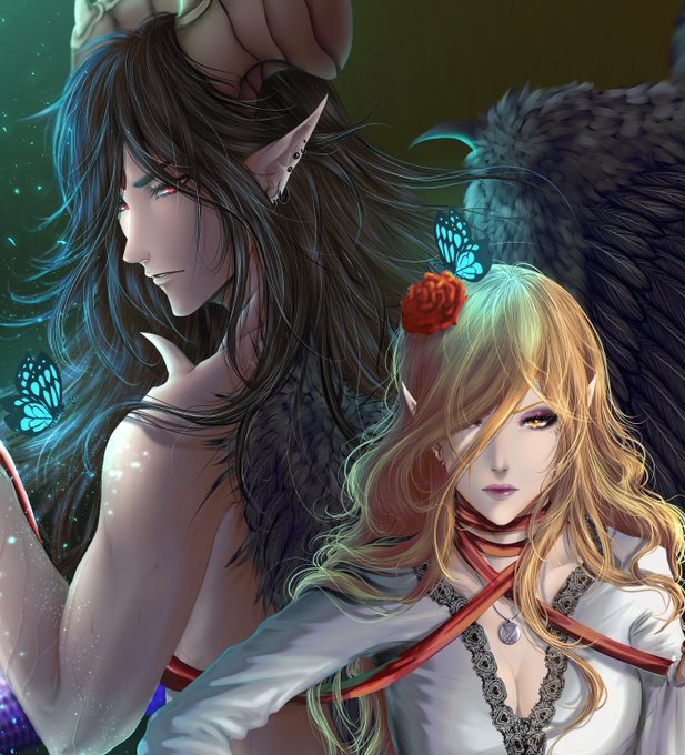 #ocs #illustration #drawing #art #digitalart #wings #demon #angel #lucifer #anyimestyle #redraw #snake #couple #fantasy #DigitalArtist