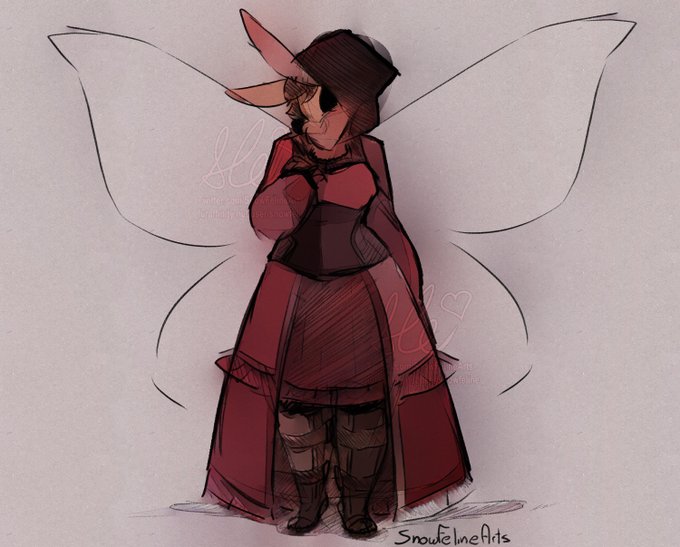 @KingSmiggles She's me but cuter and a moth. I made her into a moth last year at the peak of my Hollow Knight obsession. She's also a vampire cause I like playing one in games.