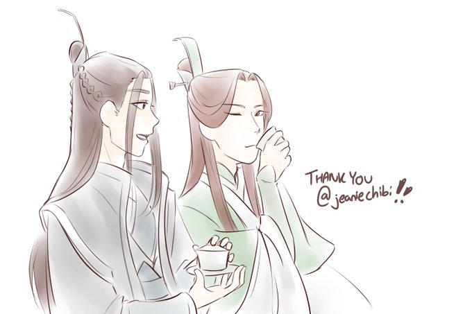 Qijiu having tea together for jeaniechibi!