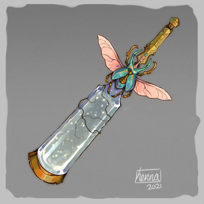 Swordtember day 3 - Whimsical & Insect - More of the 'display' type, this sword of fireflies makes even the darkest night seem warm and alive 🪲 - #swordtember #Swordtember2021