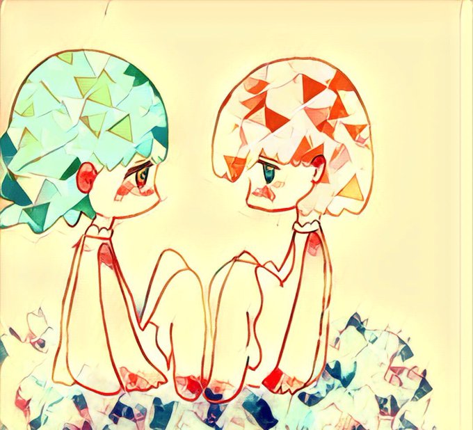 見習いてんしさま。 左がベテランてんしさま。 右の見習いてんしさまの あまりの鈍臭さに 「お前なんでてんしになったんだよ」 って毒を吐く。毒舌。