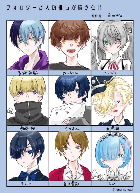 大変遅くなりました🙇♂️💦 フォロワーさんの推し様たちを描かせていただきました! リクエストくださった皆様ありがとうございました!!