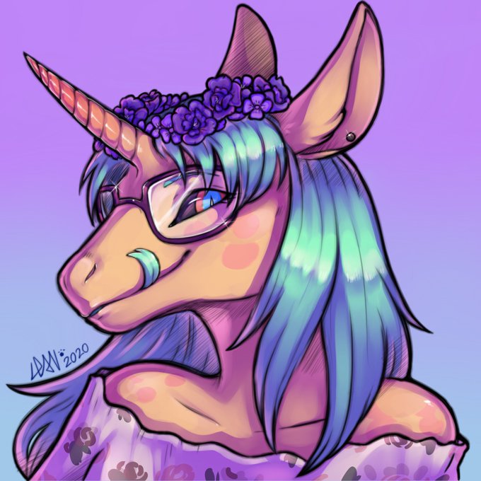 sketchy headshot commission for @Peachy_Penelope (+ badge version as she requested) 💜🌺