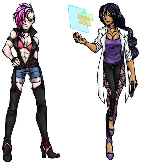 Day 9 of Jiggly July sees us to a double feature. Back in, I'd like to say 2017 me and Bitter attempted a sort of B&C thing which was like a combination of urban-punk and a little Gunvolt for the later "changes" to characters and their pets. Raz(Left) and Kamala(right) were NPCs