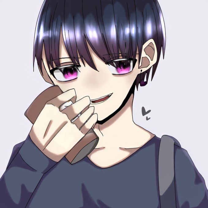 紫💜とココアが好き な 男の子。 #絵描きさんと繫がりたい #創作クラスタさんと繋がりたい