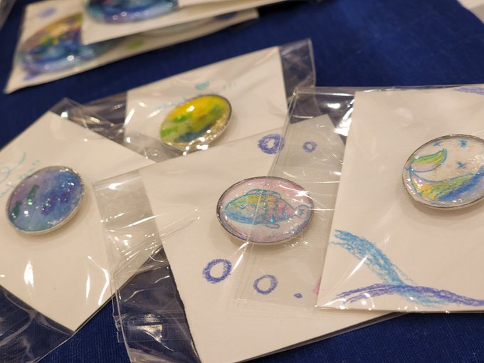 今回は海を切り取ってピンズに閉じ込めたイメージなので、お魚さんのシルエットが描かれています🐟