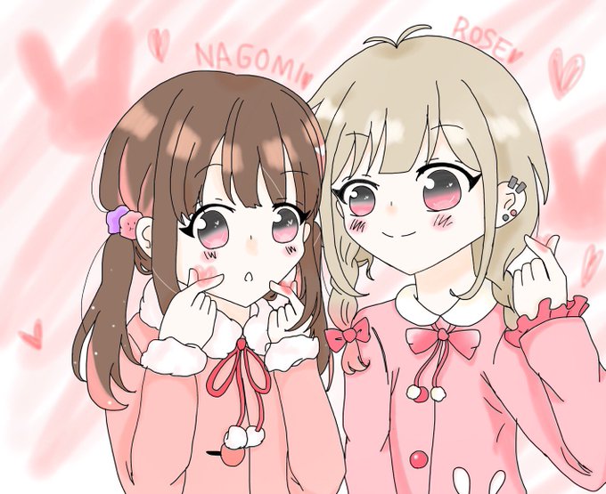 なごろずのイラスト描かせていただきました!!!!!2人ともピンクのイメージだったので、かわいい雰囲気に仕上げました!2人の代理ちゃんが可愛すぎて私の画力じゃ表現力できない😢