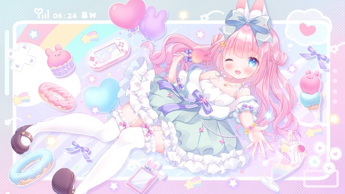 イラスト ❥ うづきえりか🍼様(@/uduki_666) 描いて頂きました!🍰🐰🎀ケーキもうさぎとリボンのモチーフです!🌸✨キラキラで可愛いです!ありがとうございます🐰💞💓