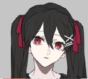 @_abmayo_ 人間の女で、赤と黒色イメージのダークな子です!! 髪型コロコロ変わります